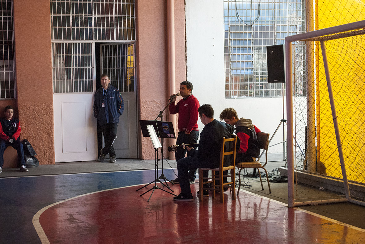 Durante a palestra, Balbinot fez diversas dinâmicas e entre as reflexões, cantava, juntamente com o Elizandro, músicas de sua autoria.