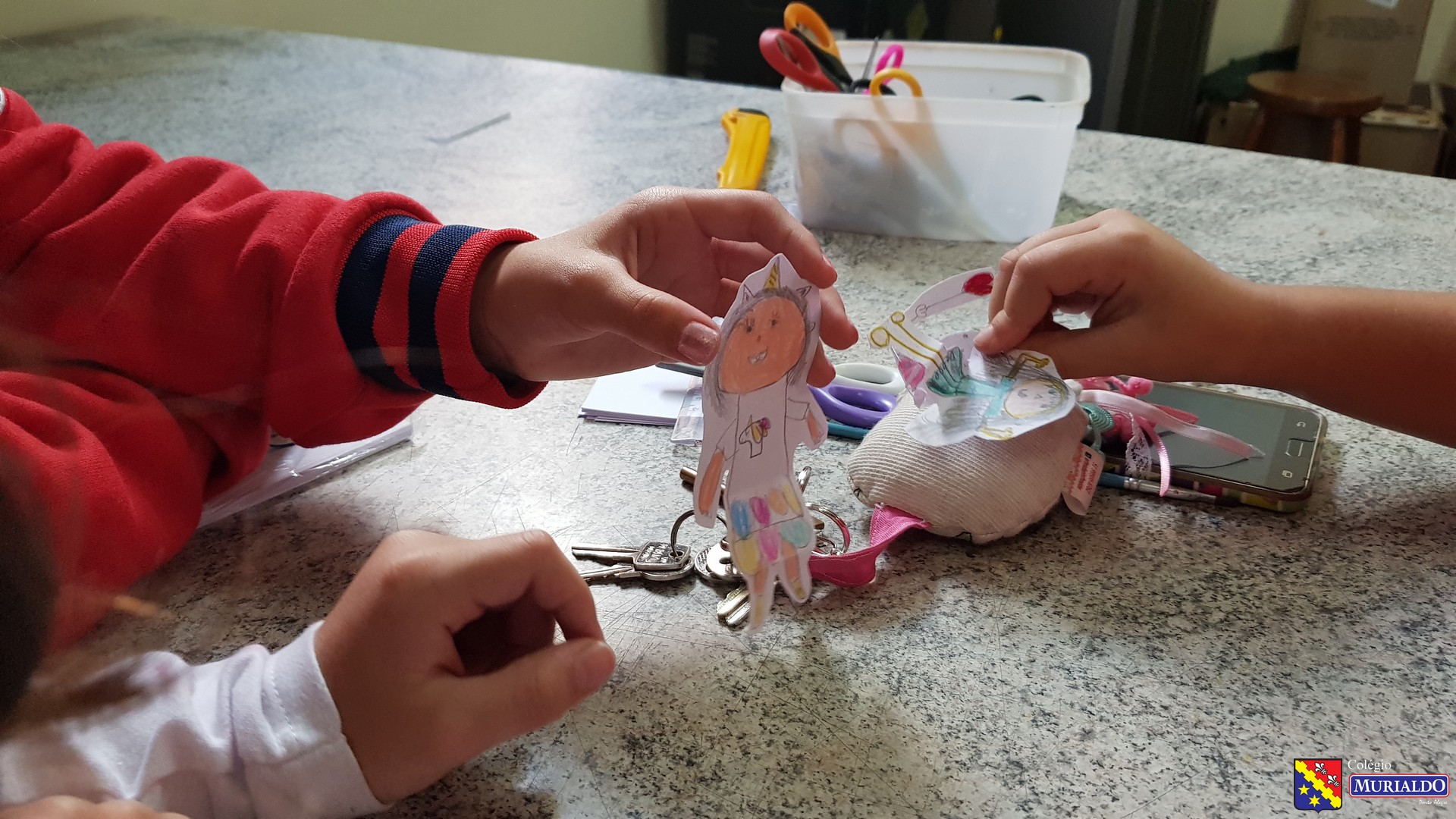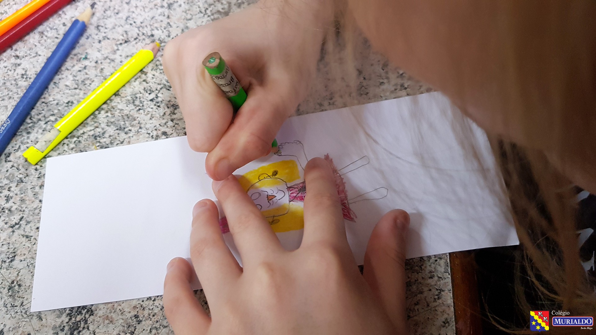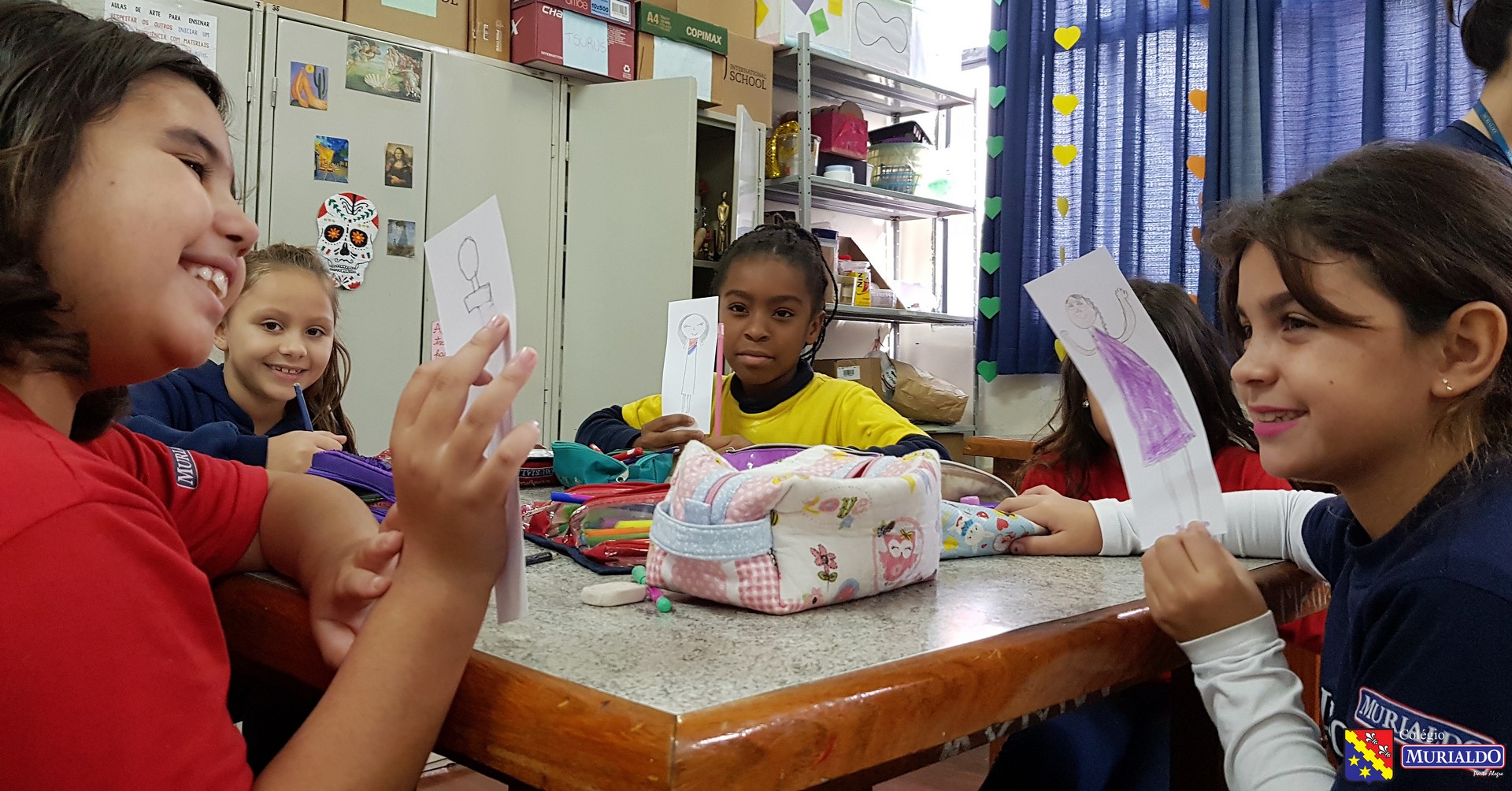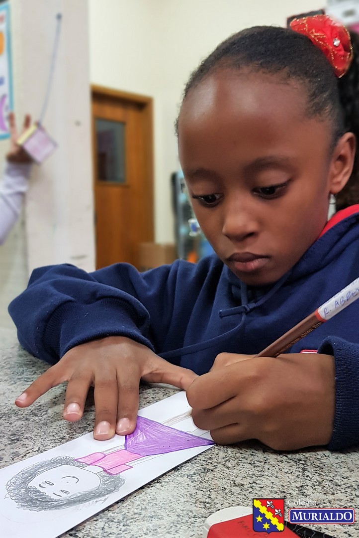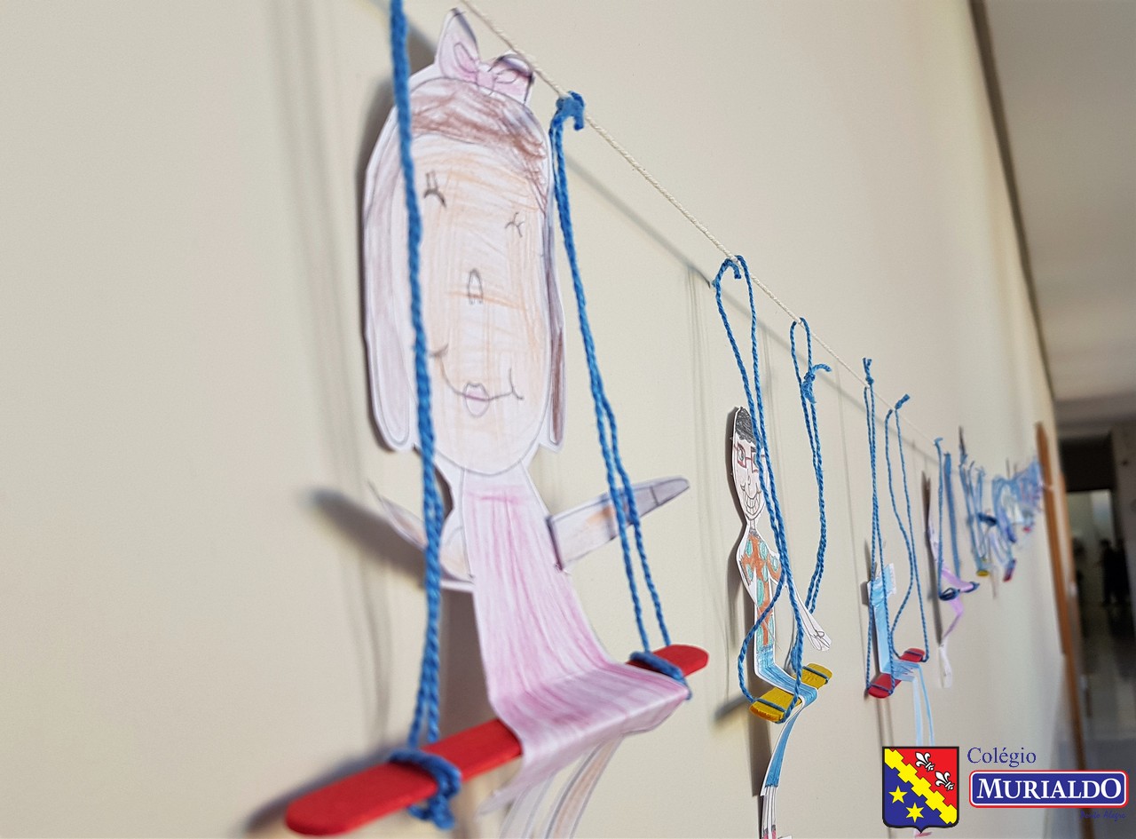 Na terça-feira, dia 14 de maio, os alunos do 2º ano do Ensino Fundamental I fizeram seu próprio retrato. Isso mesmo! Através da proposta da professora de arte, Daniela Scheneider, a turma 21 fez a montagem de balanços de barbante e palito com autorretratos das crianças através de desenho.