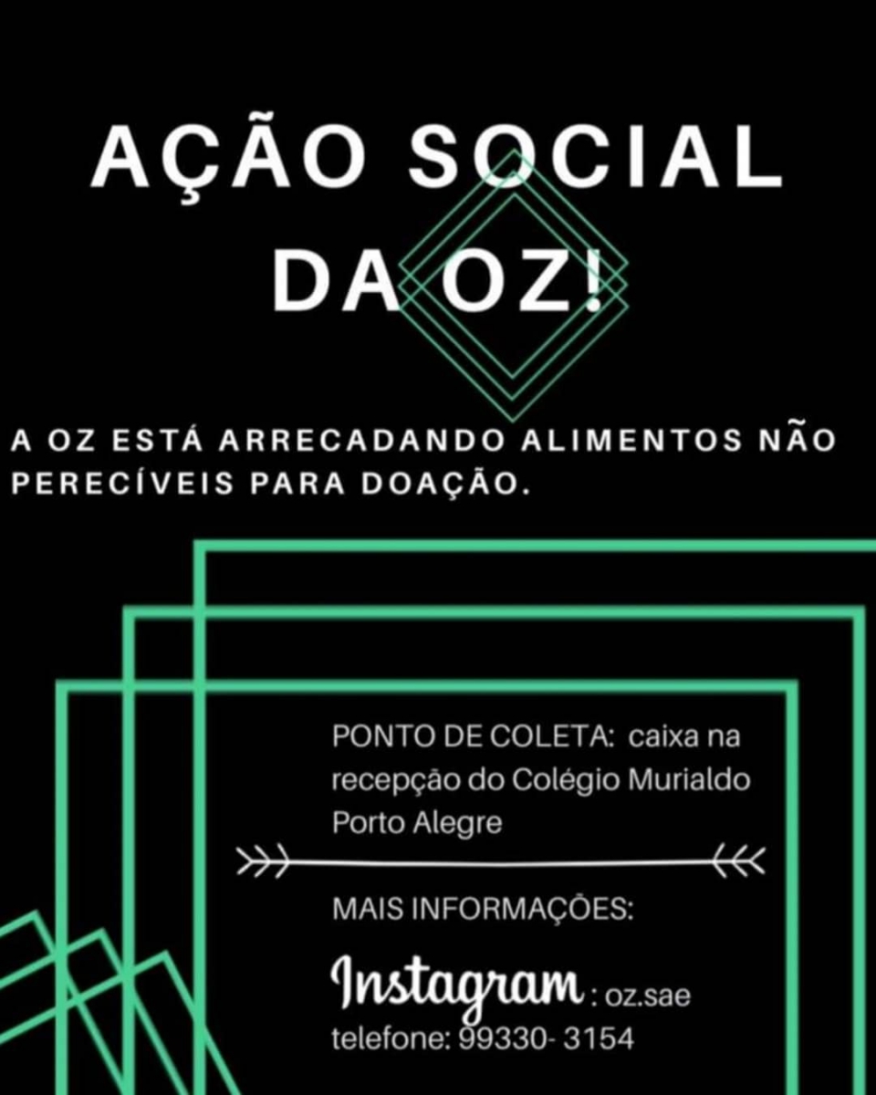 A @oz.sae, mini empresa criada pelos nossos alunos, está arrecadando alimentos não perecíveis que serão doados às entidades assistenciais da região.
