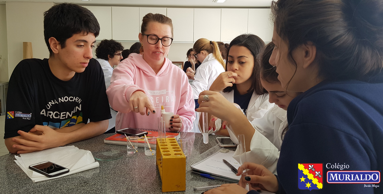 Durante a aula de química, realizada no laboratório de ciências, os alunos do 1º ano do Ensino Médio finalizaram os estudos sobre a determinação ácido/base em alguns produtos do nosso dia a dia. Com a orientação da professora Clarice, a turma 101 observou a ação do indicador chamado fenolftaleína. Este indicador é uma substância que pode mudar de cor em função do pH. A fenolftaleína é um exemplo de indicador ácido-base muito usado em laboratório. Ele fica incolor em meio ácido e adquire uma coloração rosa ou roxo quando adicionado em meio básico.
