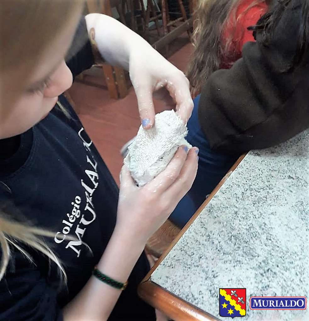 Sob orientação da professora de Arte, Daniela Scheinder, as turmas 21 e 22 produziram frutas e vegetais com jornal e ataduras gessada. Em um primeiro momento, produziram os alimentos, em outra finalizaram com a pintura.
