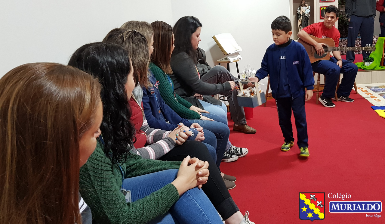 Pela manhã, no momento de oração, nossos professores foram convidados para irem a capela, onde receberam uma linda homenagem dos alunos, com a canção "Oração".