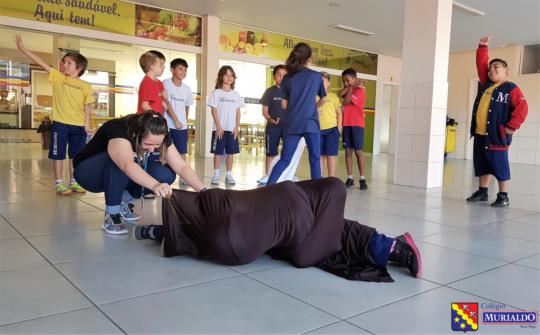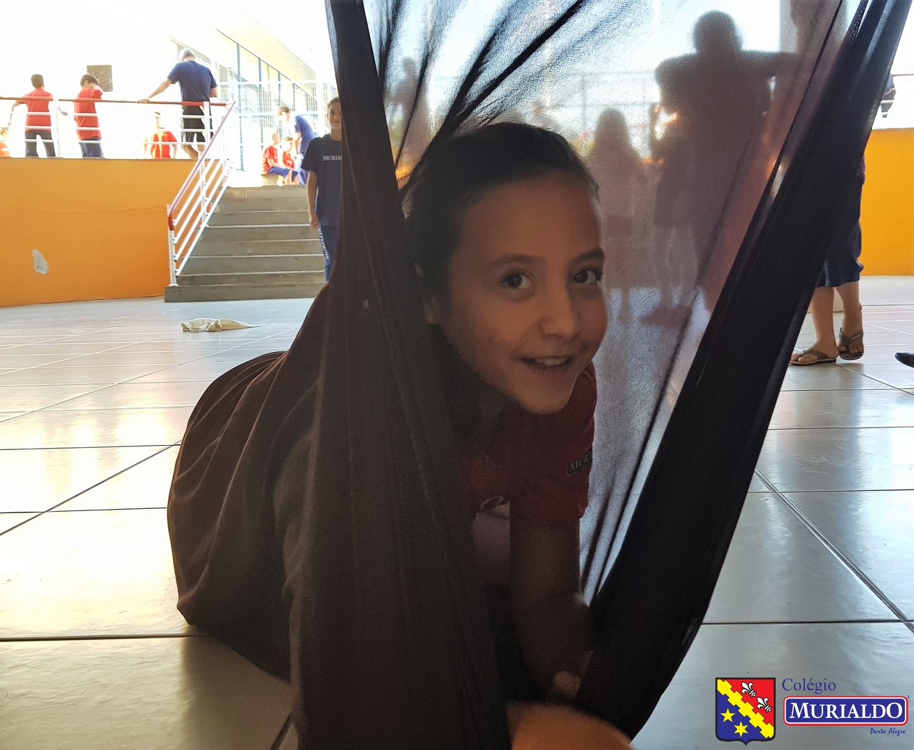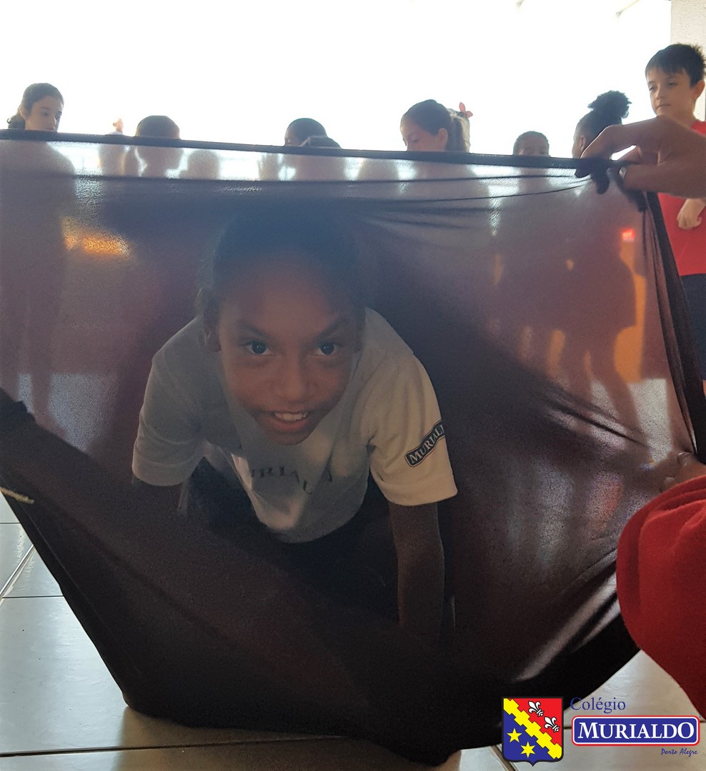 Na aula de arte da turma 31, em 02.4.2019, os alunos foram desafiados pela professora Daniela Scheider a trabalhar o corpo como suporte à arte. Através da observação das criações dos artistas Lygia Clark e Hélio Oiticica, os alunos puderam vivenciar os conceitos das obras “O Túnel” – onde eles deveriam atravessar e chegar até a outra extremidade – e “O Parangolé” – no qual as crianças elegiam um amigo para, ao som de uma música, mostrar suas habilidades artísticas, como a dança, por exemplo.