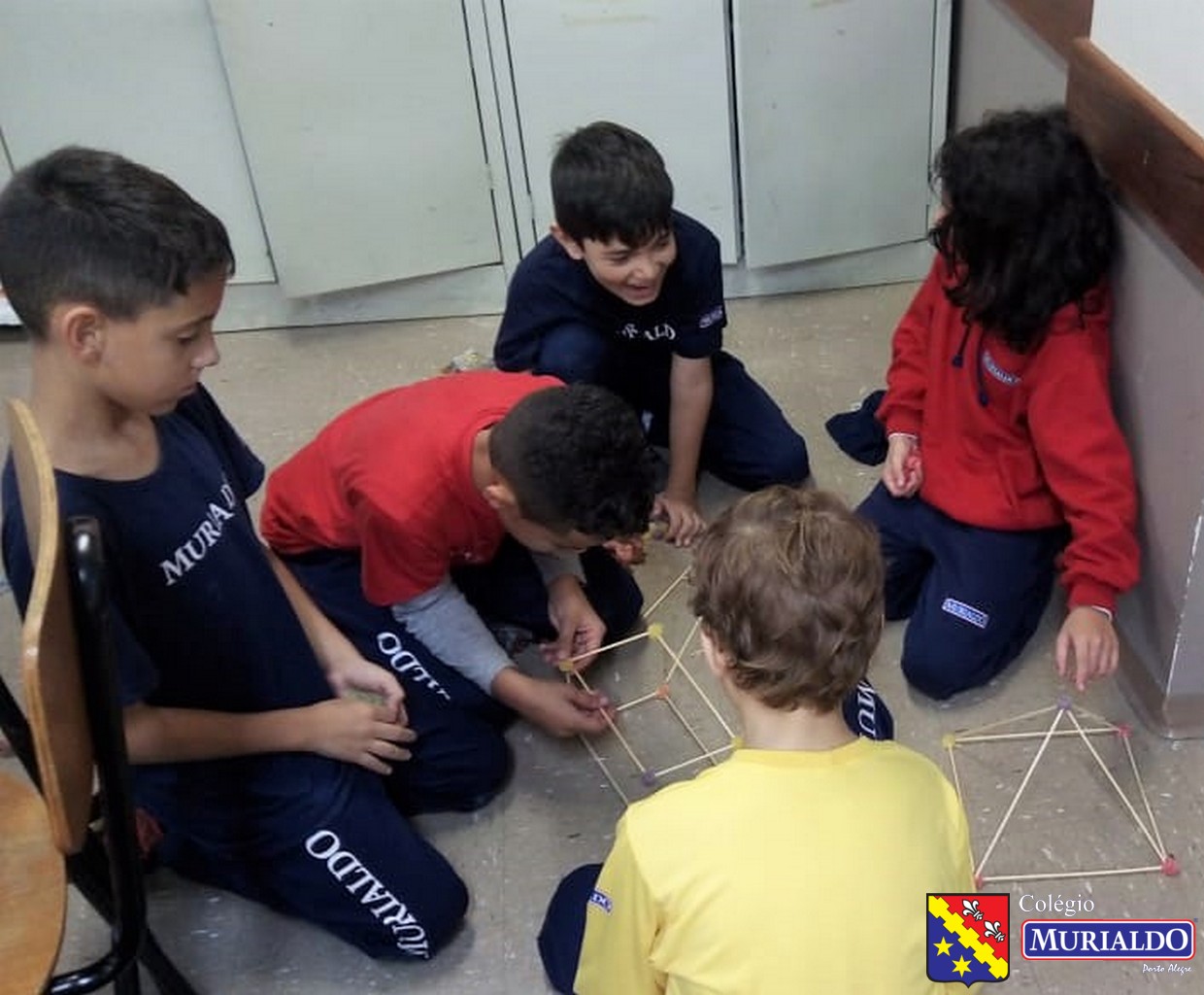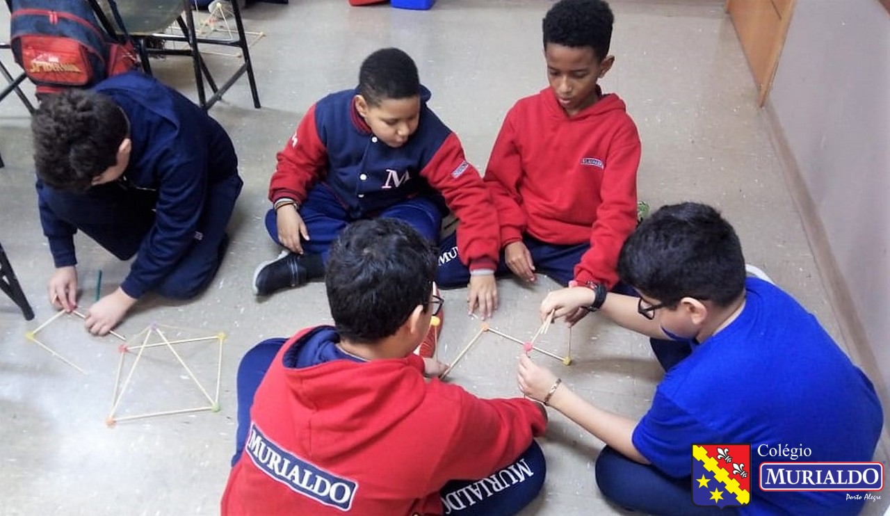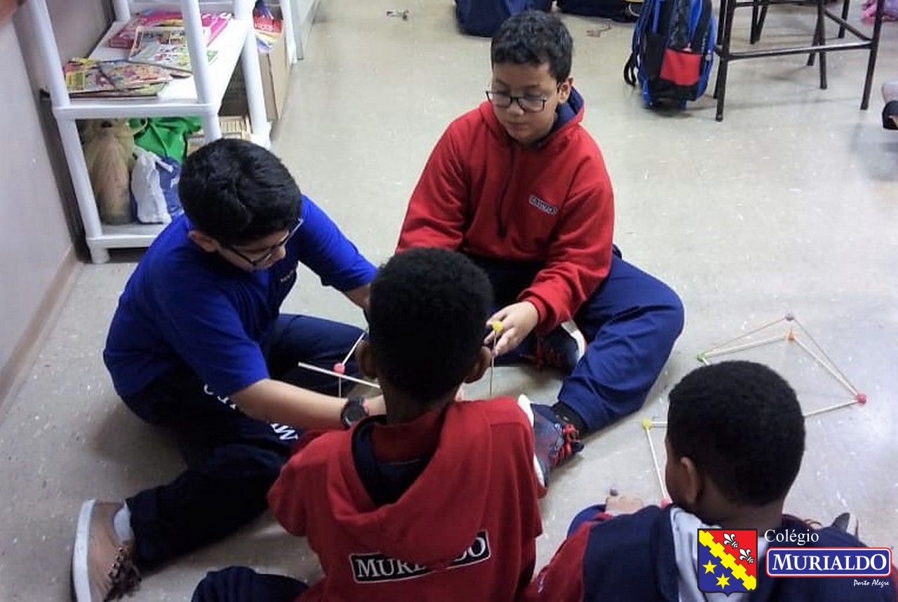 Sob orientação da professora Marjori, os alunos do 4º do Ensino Fundamental I tinha como objetivo construir em sala de aula um paralelepípedo, um cubo e uma pirâmide. Cofira o resultado da atividade, que foi realizada com apenas dois itens: palitos de churrasco e balas de goma.