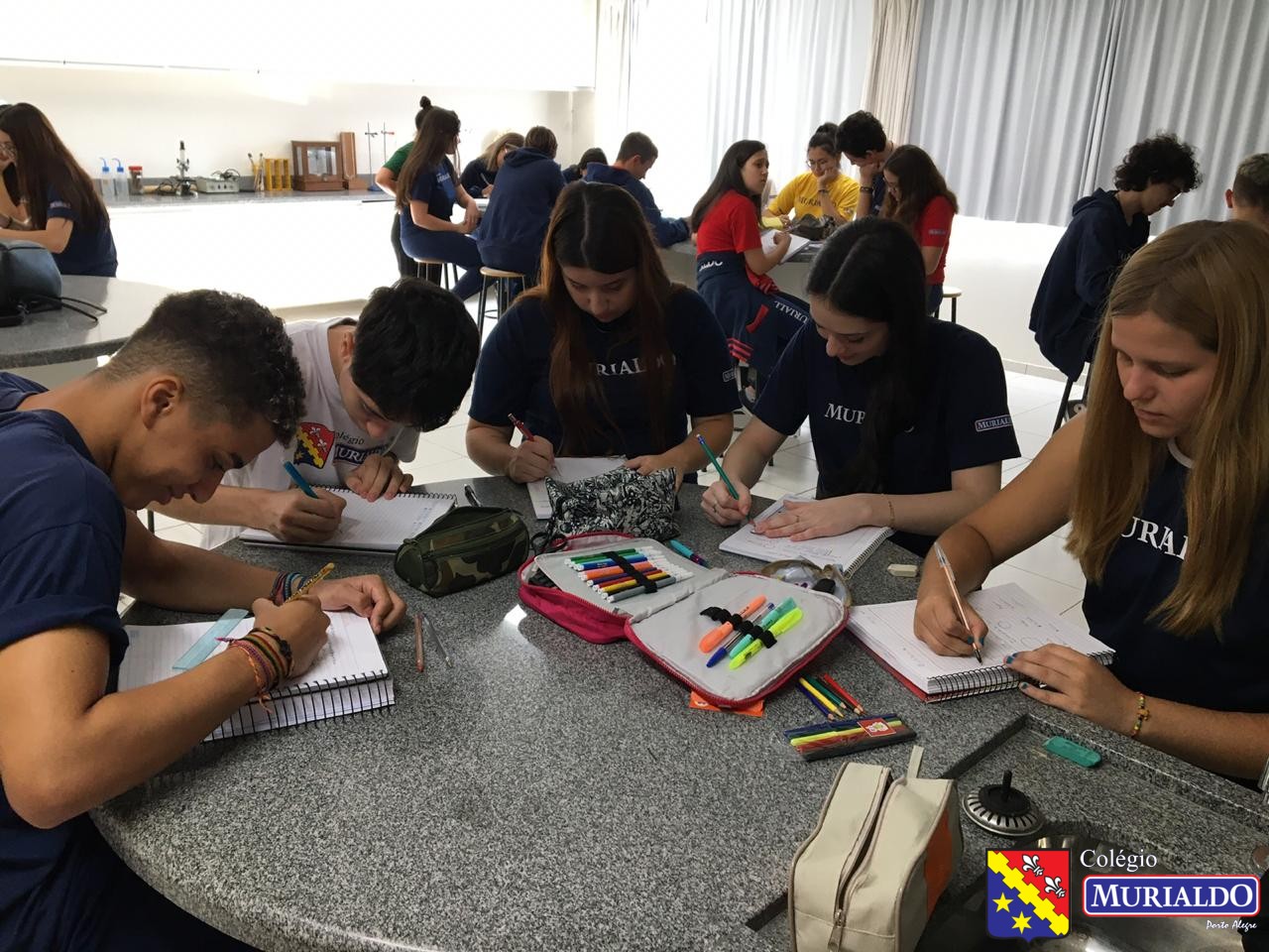 Durante a semana, alunos do 6º do EF II até o 2º ano do Ensino Médio estiveram no laboratório de ciências para entender os métodos de estudo utilizados durante as atividades. Sob a orientação das professoras Juliana Zank e Luana Godoy, foi explicado as turmas a importância das boas práticas e da necessidade de se cumprir as normas de segurança que orientam as atividades em laboratório, como por exemplo, o uso do jaleco. Ao final de cada período, os alunos tiveram como tarefa representar o laboratório do colégio, bem como as práticas vivenciadas.