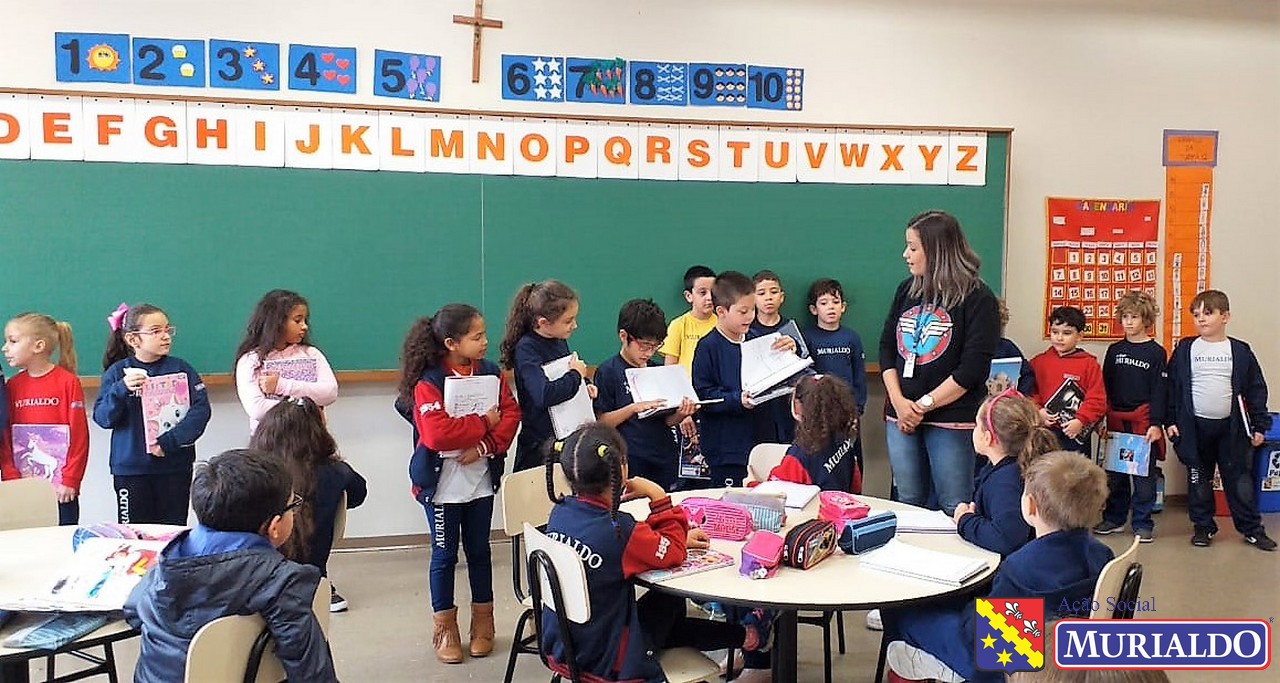 Durante o mês de maio, as turmas do 2º ano do Ensino Fundamental visitaram as turmas 11, 12 e 13 para auxiliarem nossos pequenos no uso, no cuidado e no carinho que cada um deve ter com seu novo caderno de linhas.