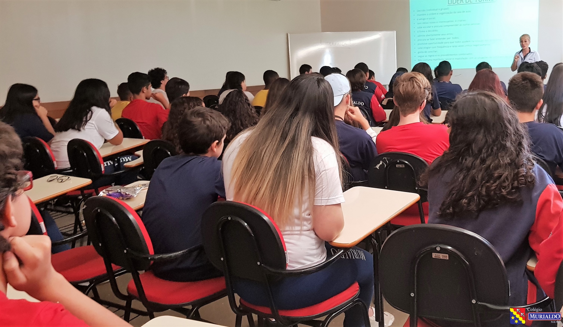 Ao longo da semana, a coordenação pedgógica do Colégio Murialdo Porto Alegre, realizou uma série de encontros com os alunos do 6º ano do EF II até o 3º ano do Ensino Médio para um bate-papo sobre lideranças de turmas. Atentos as explicações da coordenadora pedagógica, Maristela Souza, as turmas puderam entender que, para ser o líder de uma turma, o aluno deve ter algumas características, como por exemplo, ser amigo, tem ideias novas e interessantes, é criativo, sabe escutar e procura compreender os colegas.