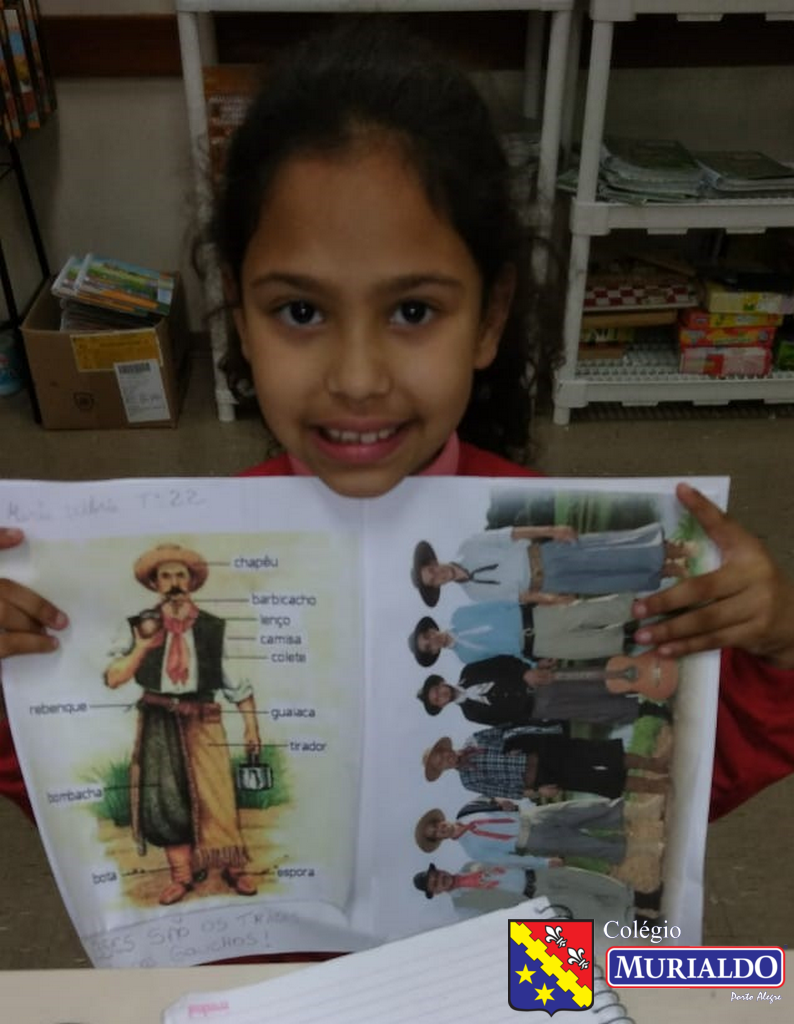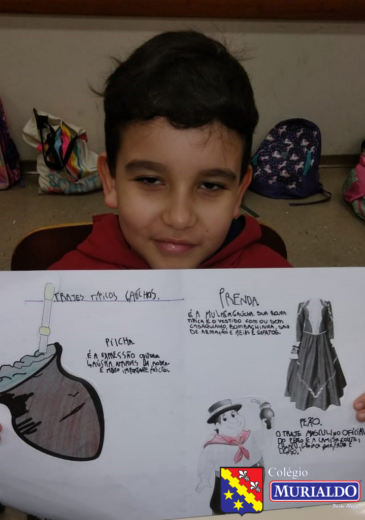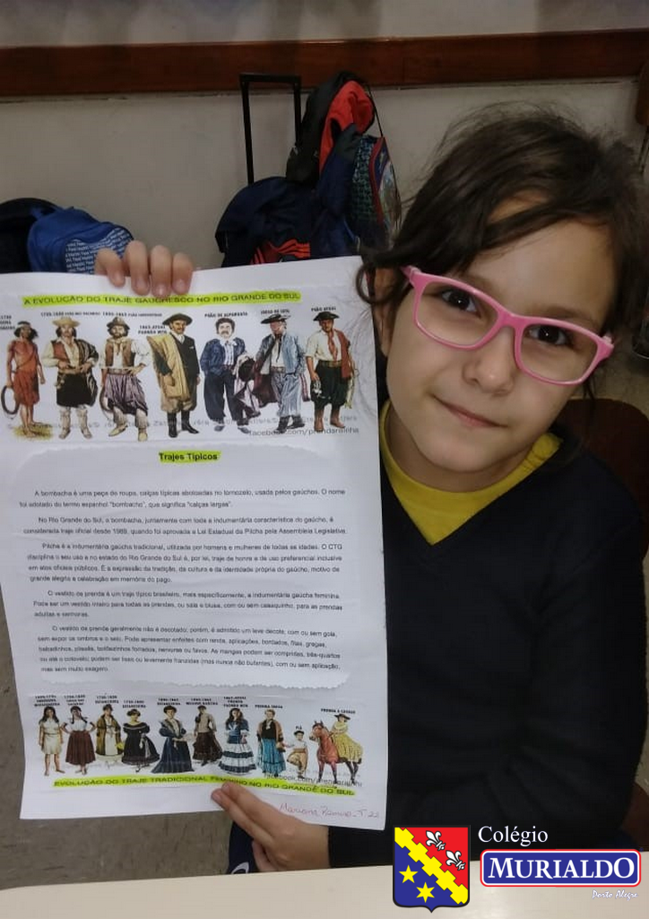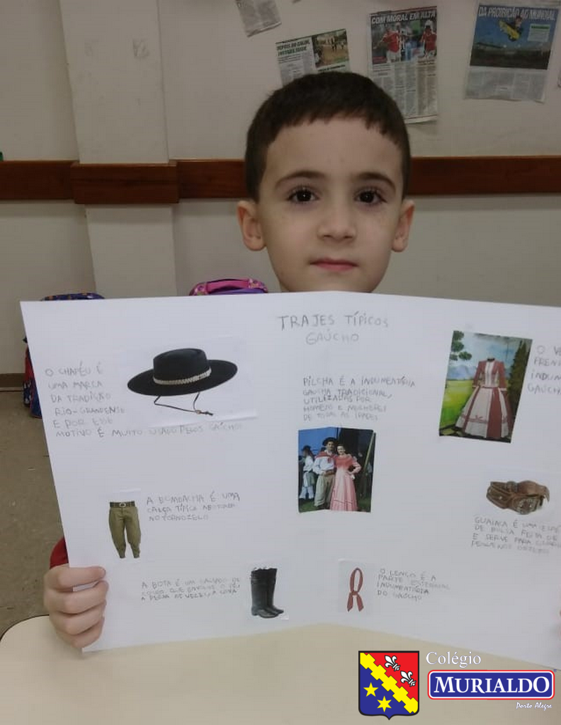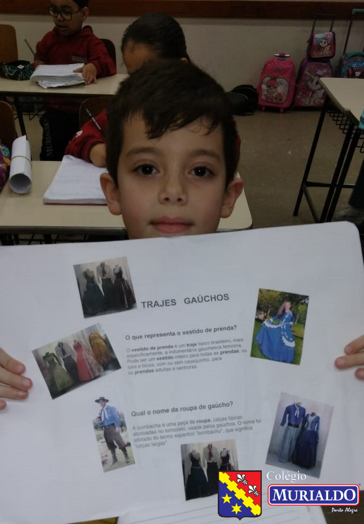 A turma 22 nesta semana realizou pesquisas referentes a indumentária gaúcha e, na quarta-feira, os alunos realizaram a apresentação dos trabalhos em aula, compartilhando os saberes com os colegas e exercitando a oralidade e autonomia dos educandos.