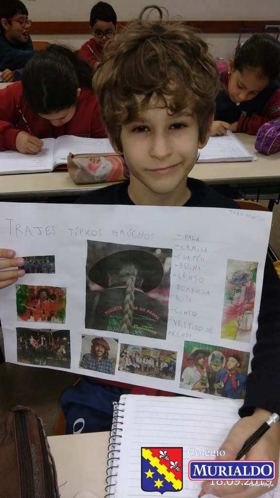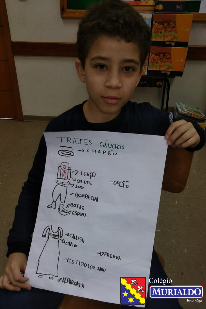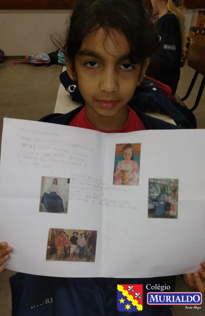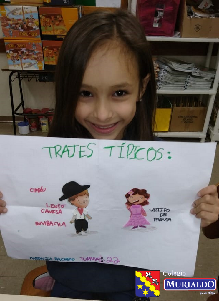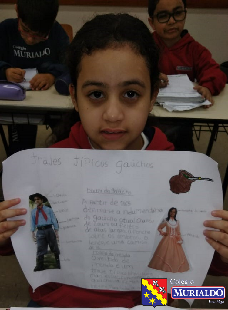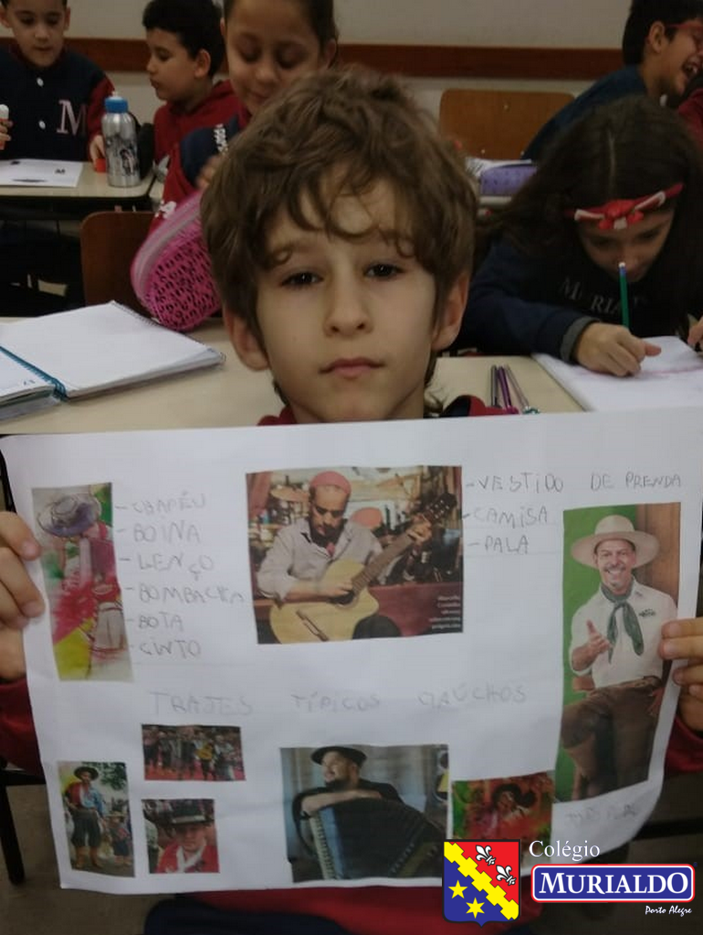 A turma 22 nesta semana realizou pesquisas referentes a indumentária gaúcha e, na quarta-feira, os alunos realizaram a apresentação dos trabalhos em aula, compartilhando os saberes com os colegas e exercitando a oralidade e autonomia dos educandos.