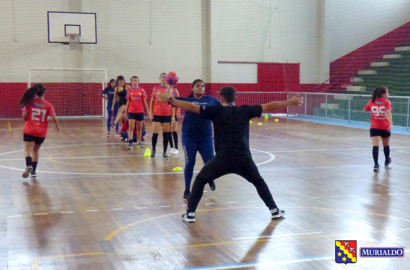 Foram retomados os treinos do handebol feminino do Colégio. A modalidade esportiva, oferecida como atividade extraclasse, é a responsável pela escola das alunas atletas que integram o time oficial do Murialdo.