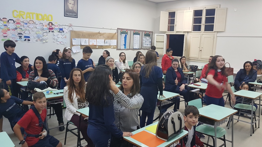 Tanto de manhã como no turno da tarde, todas as turmas receberam a visita dos novos diretores do Colégio Murialdo: Padre Joacir Della Giustina, diretor; Pe. Durival Daros, diretor financeiro. Na ocasião, foi feita a entrega da Agenda Murialdina de bombom “Amor de Murialdo”.