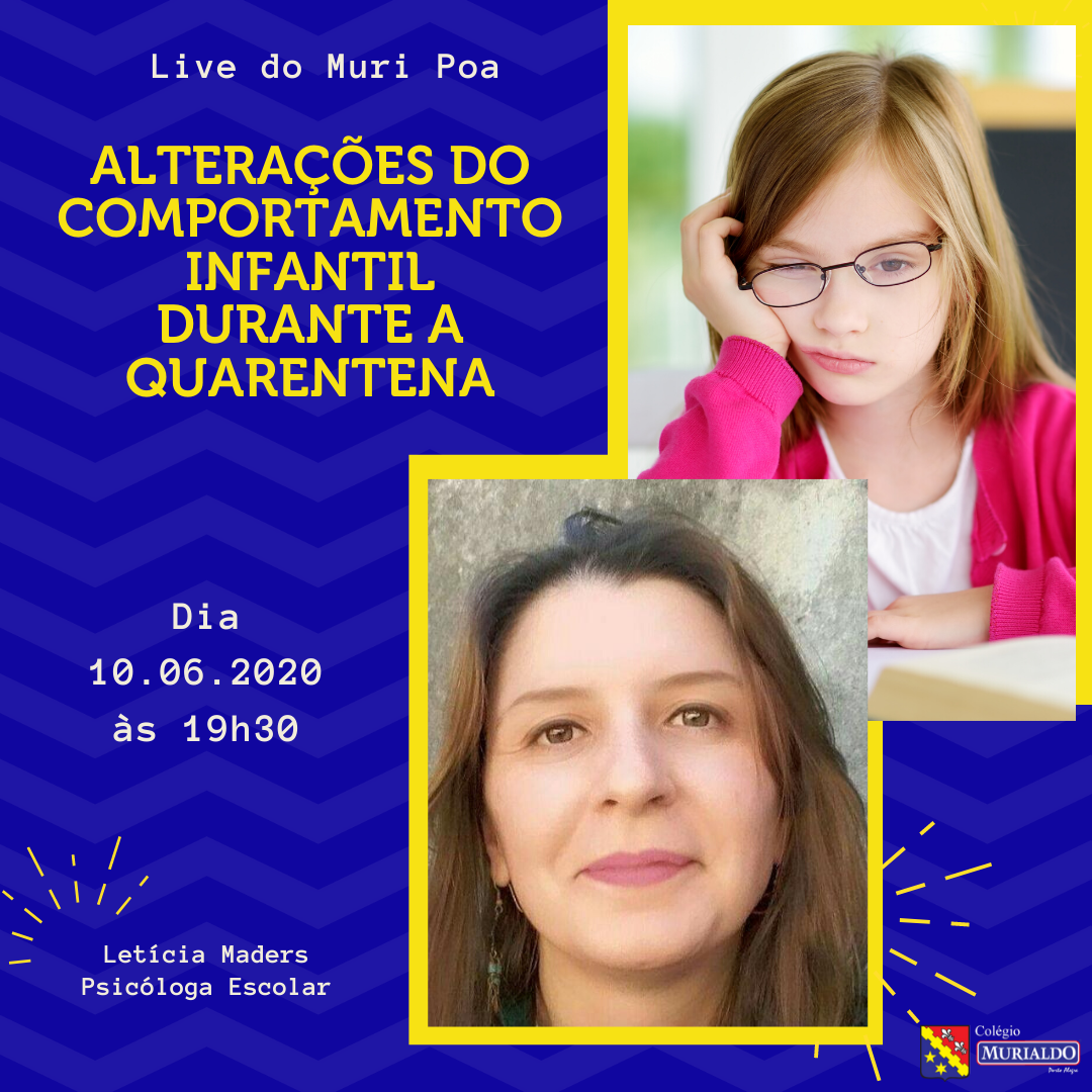 Com o tema "Alterações de Comportamento Social das Crianças Durante a Quarentena", a live é destinada a auxiliar as famílias a compreenderem melhor como ajudar seus filhos nesses momento de isolamento social.