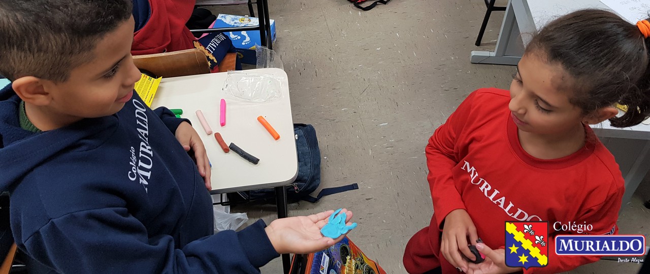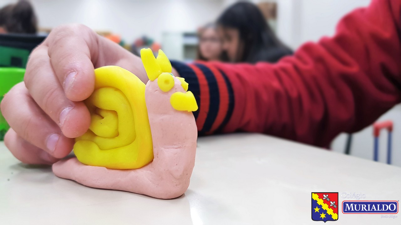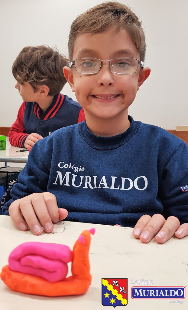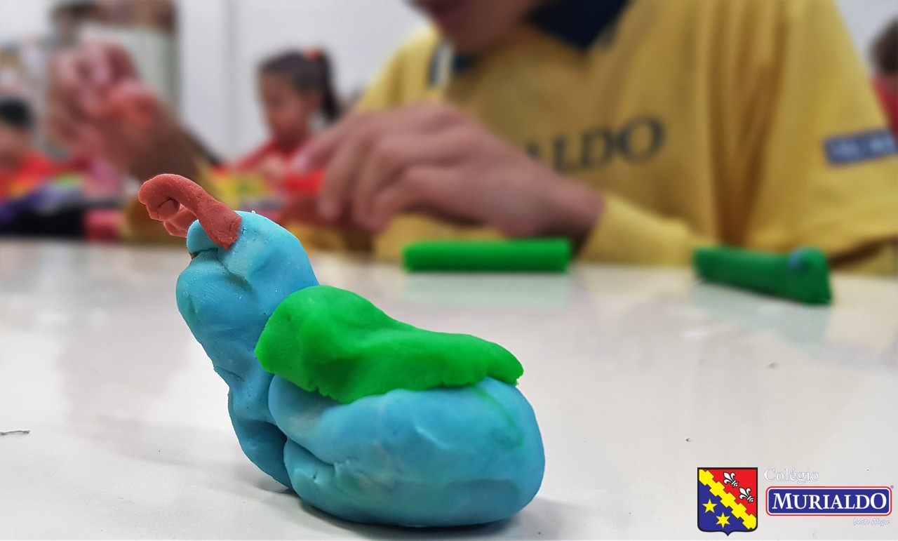 Com a orientação da professora Fernanda, os alunos do 3º ano do Ensino Fundamental I recriam animais invertebrados, com massinha de modelar, como forma de entender um pouco melhor a estrutura desses animais que não tem coluna.