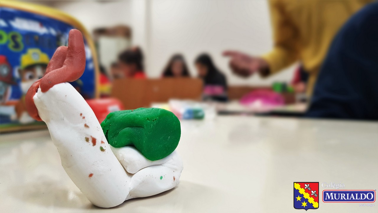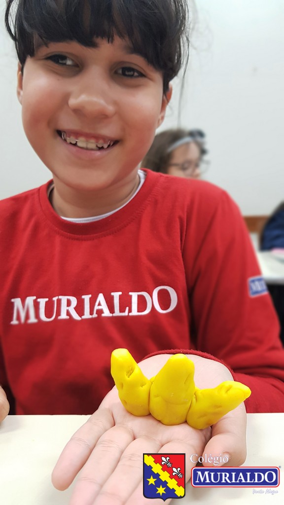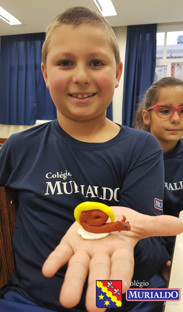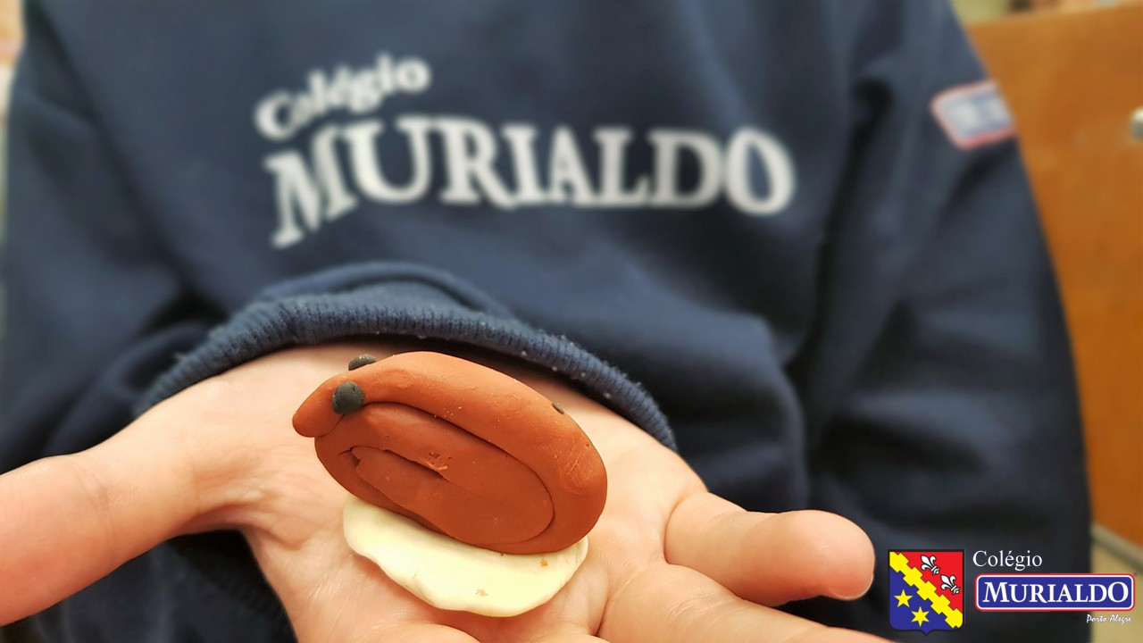 Com a orientação da professora Fernanda, os alunos do 3º ano do Ensino Fundamental I recriam animais invertebrados, com massinha de modelar, como forma de entender um pouco melhor a estrutura desses animais que não tem coluna.