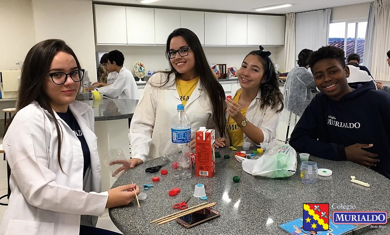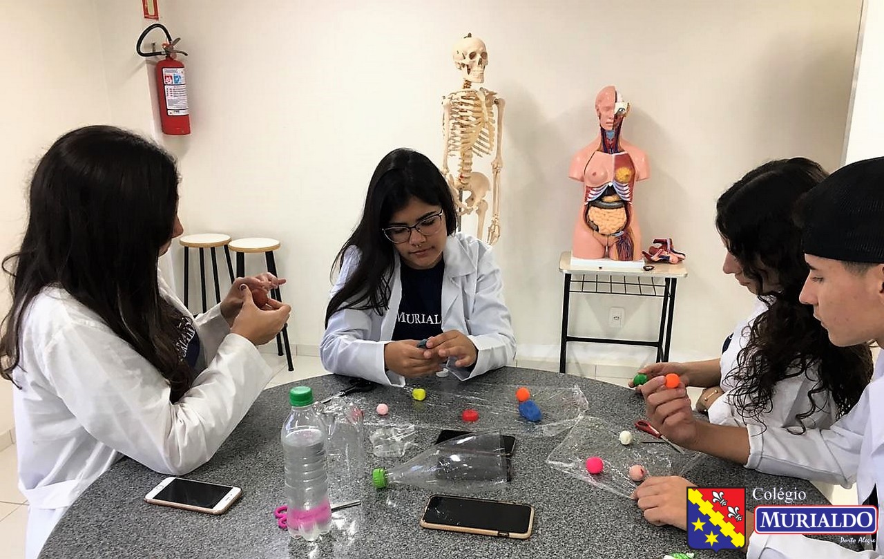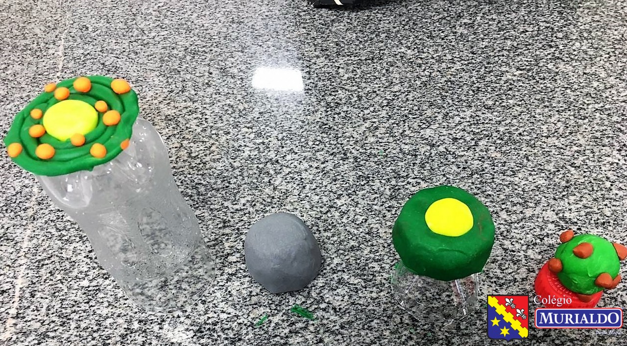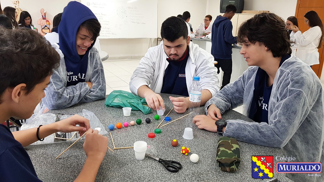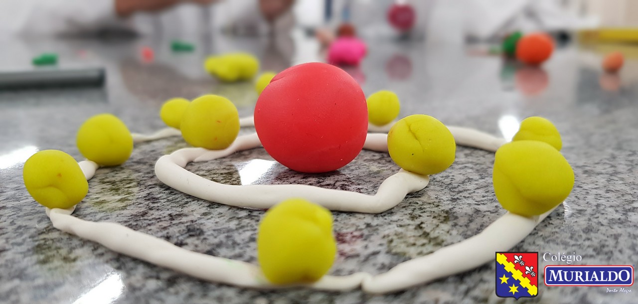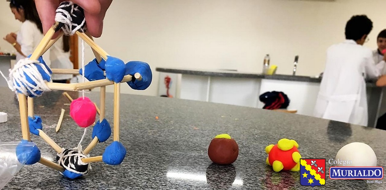 Agora pela manhã, 28 de maio, os alunos do 9º ano do Ensino Fundamental II estudaram os vários conceitos de modelo atômicos. Sob orientação da professora de ciências, Juliana Cardoso, a turma 91 colocou a mão na massa e a cada grupo criou o seu modelo de átomo. No laboratório de ciências, cada grupo observou os vários tipos, seus semelhanças e diferenças.