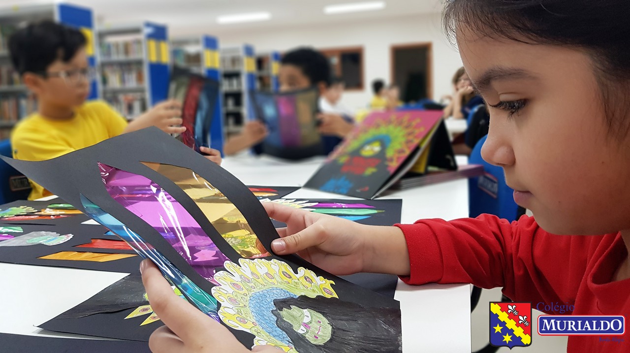 Umas das atividaes que todas as turmas do Ensino Fundamental I realizam é a leitura obrigatória de algumas obras literárias. Agora no mês de junho, os alunos do 4º do Ensino Fundamental I fizeram uma ficha de leitura e um debate sobre o livro "A Princesa Vampira", de Jonas Ribeiro, que conta sobre uma lenda espanhola que acaba de uma forma inusitada e engraçada. Com a proposta de expor a atividade para recepcionar o autor, na tarde de autógrafos que irá ocorrer em julho, a turma 41 fez uma releitura do livro, onde cada aluno fez um vitral, como o descrito na história.