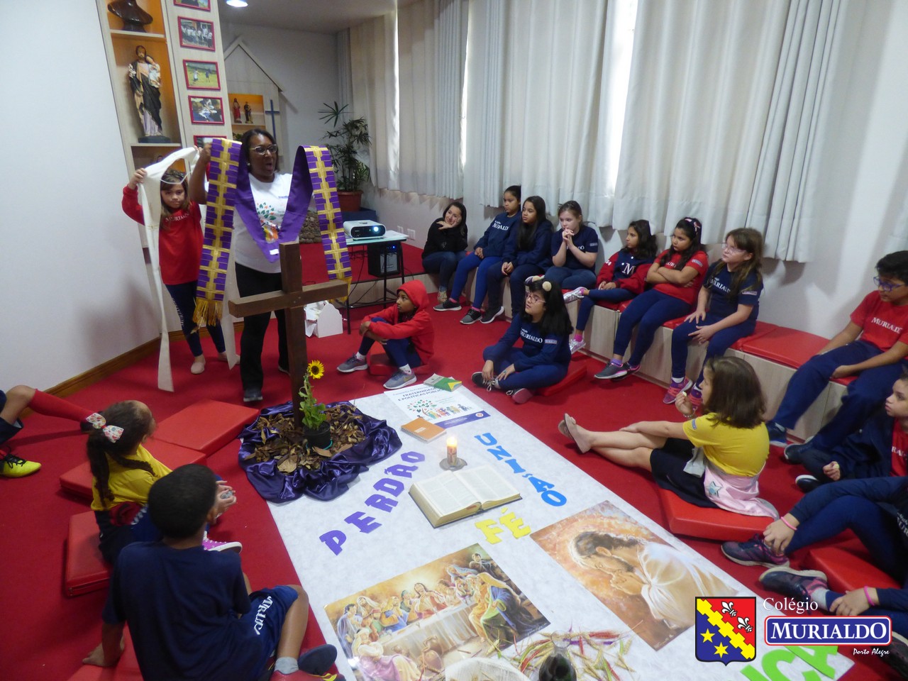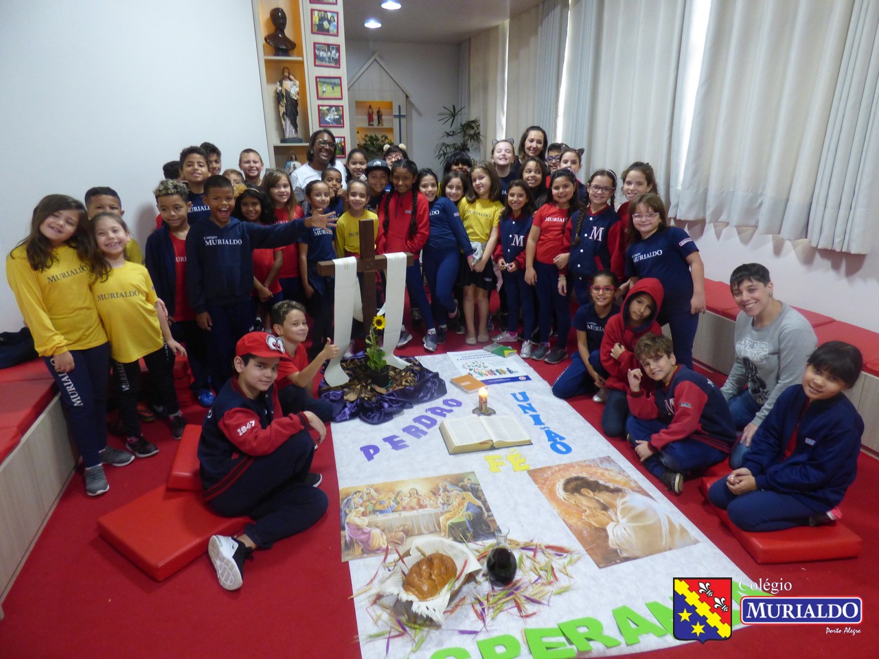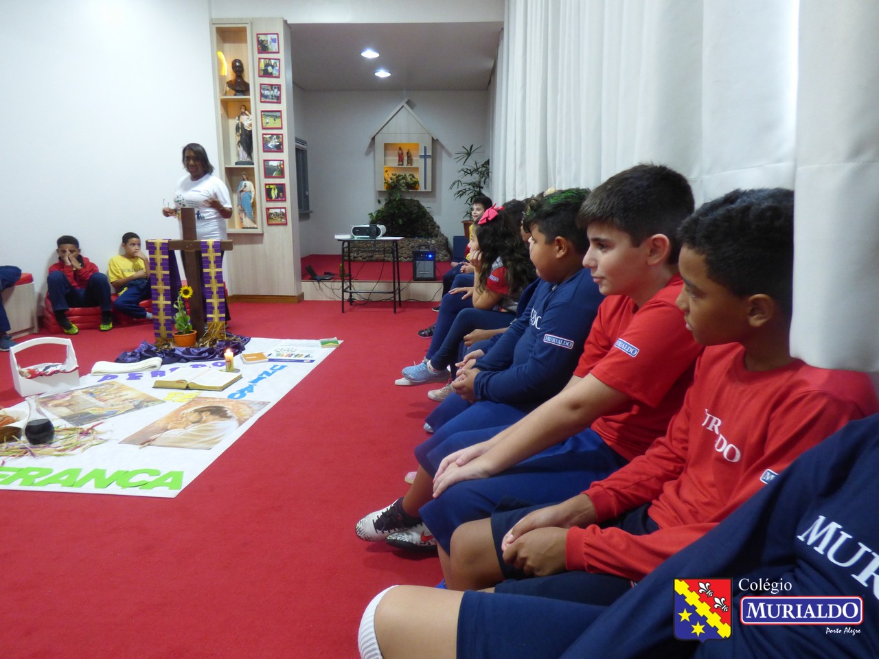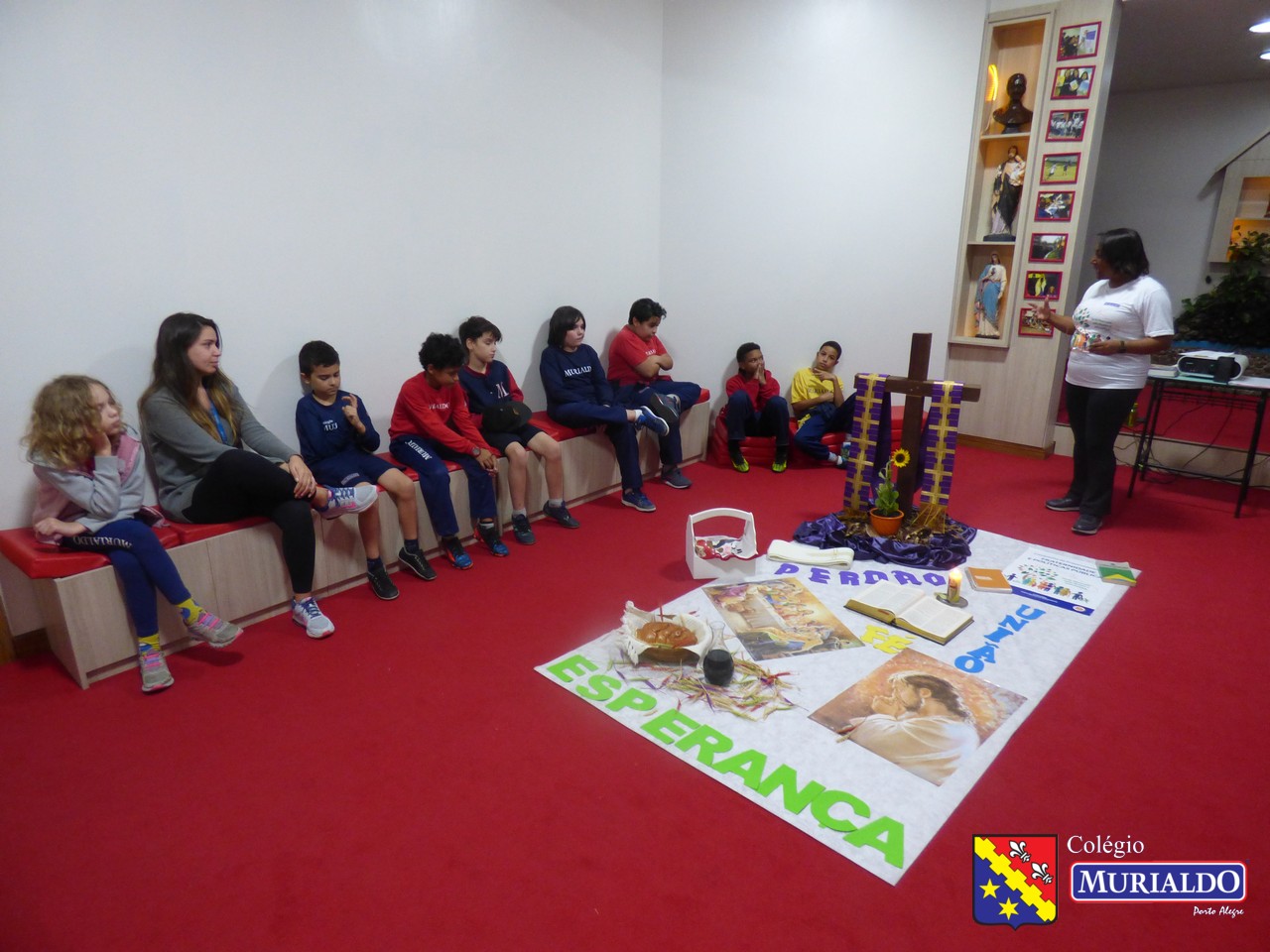 Na tarde da terça-feira, 16 de abril, alunos do 2º, 3º e 5º ano foram à capela do colégio onde participaram do momento de espiritualidade.