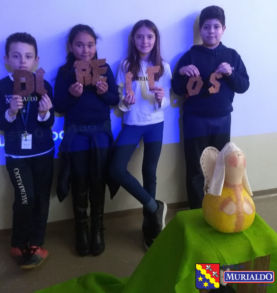 Na semana da criança, os alunos do Ensino Fundamental I estão participando de um momento de formação e espiritualidade sobre o Estatuto da Criança e do Adolescente: direitos e deveres. Sob orientação da professora Olga, da Pastoral, está sendo abordada com as turmas 41 e 51 "Meus Direitos Protegem Meus Valores".
