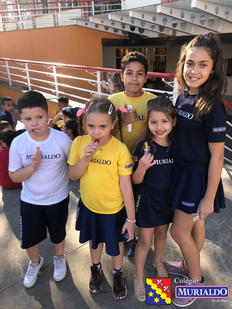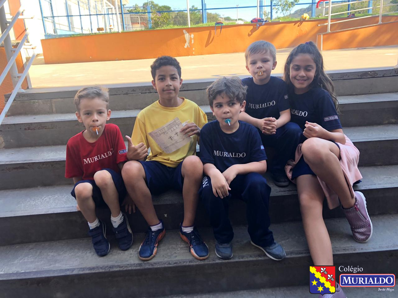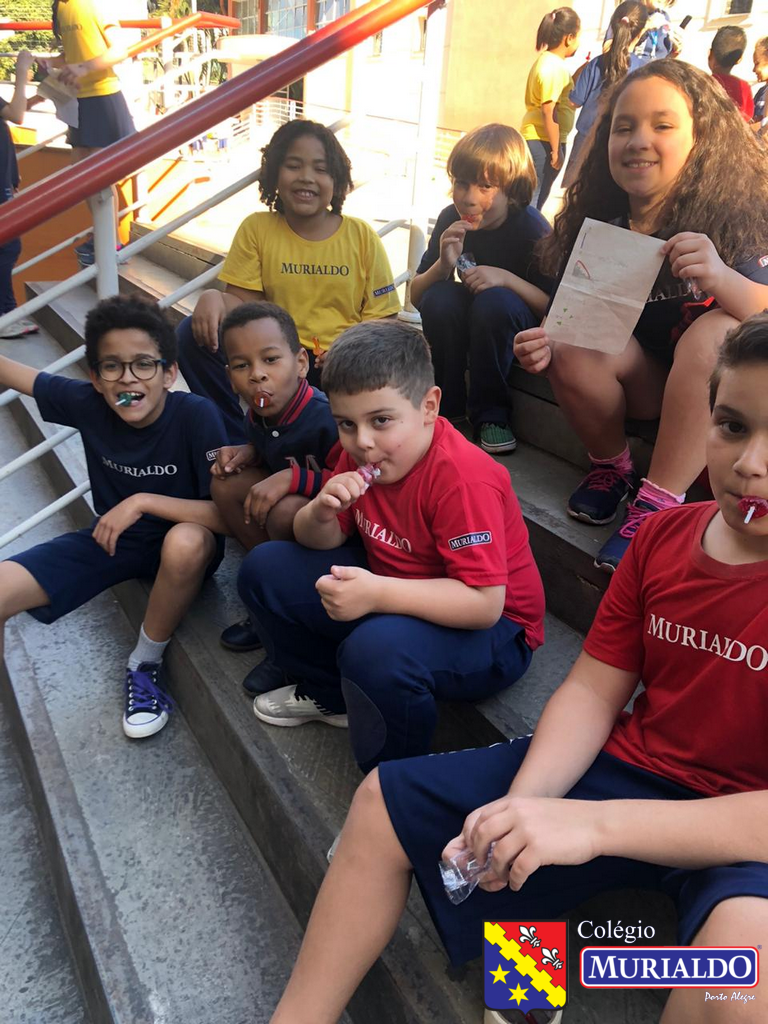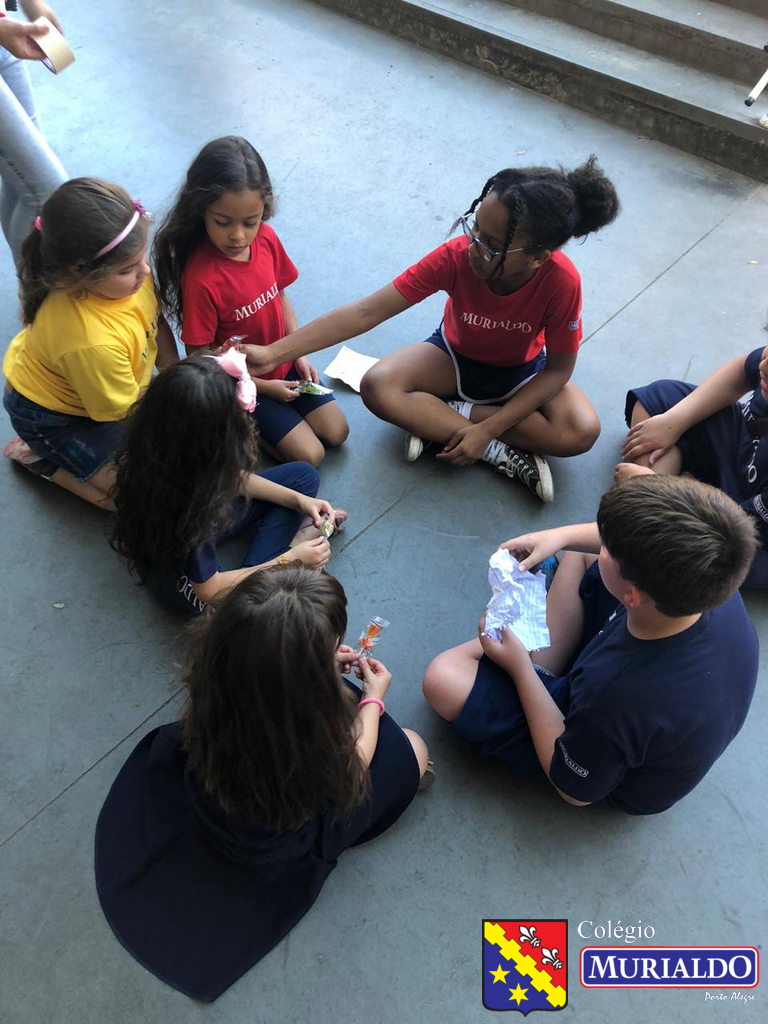A atividade realizada foi uma caça ao tesouro e as pistas foram criadas pelos alunos do quinto ano que, auxiliaram seus afilhados a acharem os valiosos tesouros.