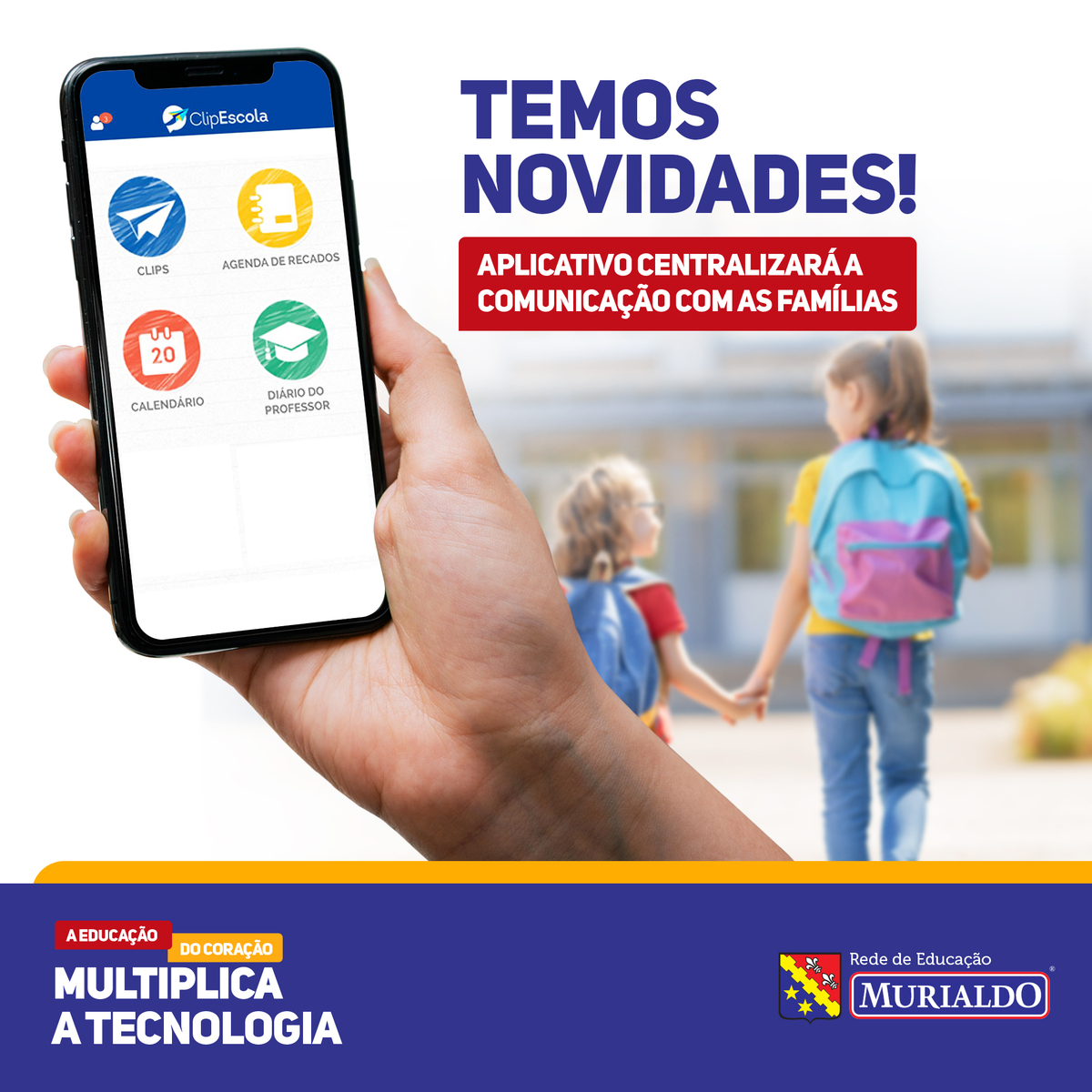 A tecnologia está cada vez mais inserida em nosso cotidiano. Analisando esse cenário e com o objetivo de sempre oferecer inovações, melhorias e mais facilidade para a comunidade escolar, a Rede Murialdo de Educação passará a contar, a partir do início do ano letivo, com um aplicativo que substituirá a agenda física e o aplicativo EducConect. Uma plataforma de comunicação que aproxima escola e família, centralizando todas as informações.