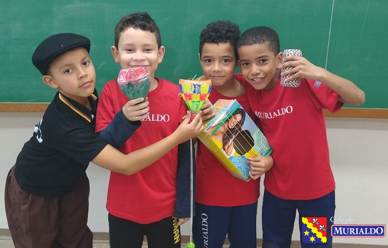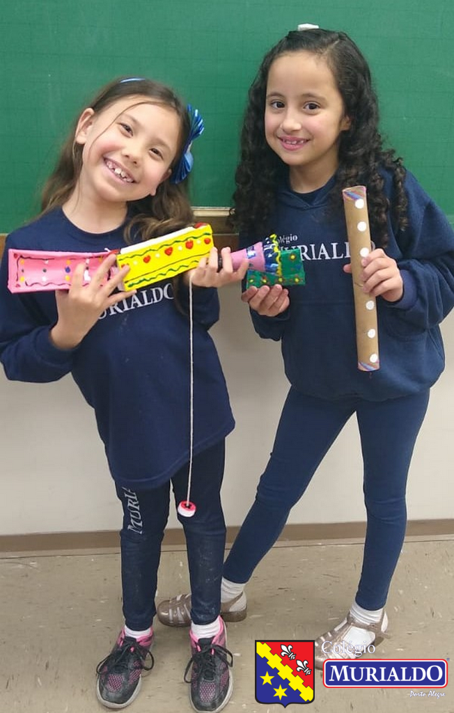 Cada um teve que confeccionar um brinquedo ou um instrumento musical, feito de material reciclável, para apresentar para a turma. Não faltou criatividade e empenho dos alunos e das famílias.
