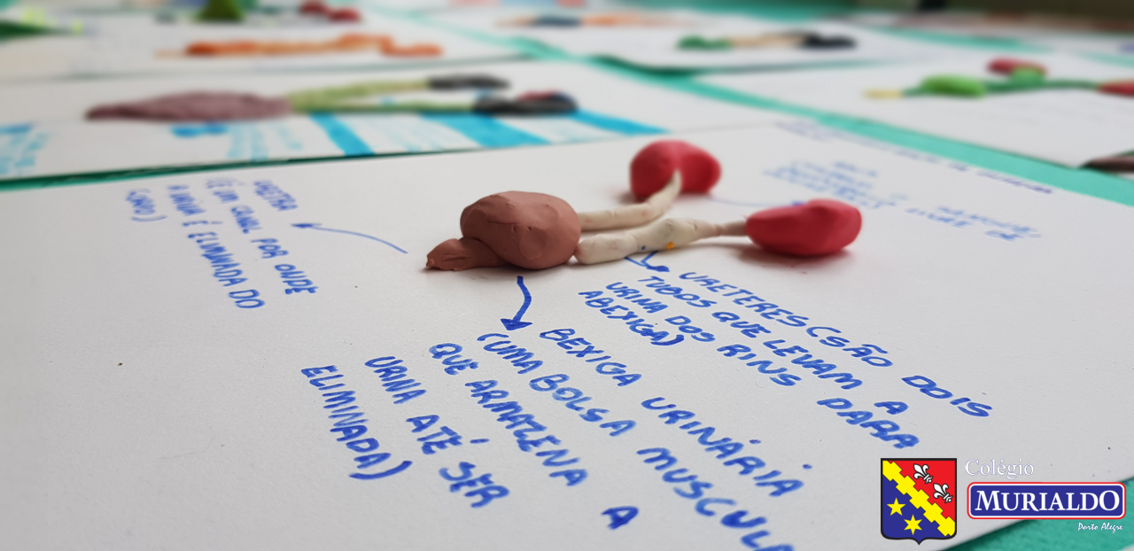 Hoje pela manhã, dia 30 de agosto, os alunos do 5º do Ensino Fundamental I finalizaram o estudo sobre o sistema urinário. Como forma de fixar o que foi aprendido em sala de aula, a turma 51 utilizou massinha de modelar para construir o sistema urinário do corpo humano. A aluna Gabrielle, em conjunto com a família - avó e pais - criaram a ideia de filtragem do sangue, que foi demonstrado aos colegas em sala de aula.