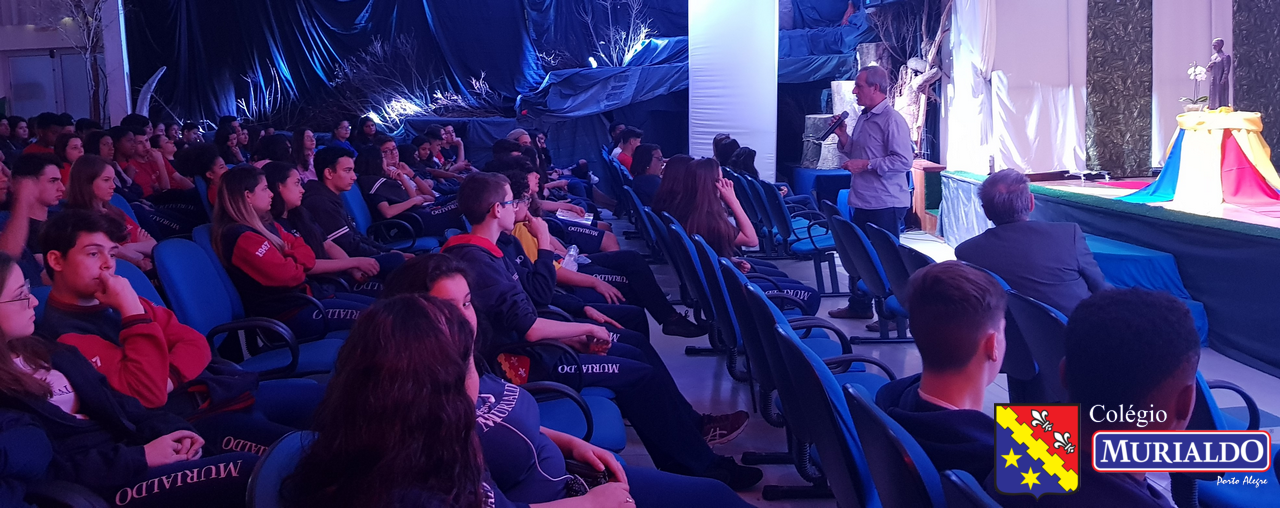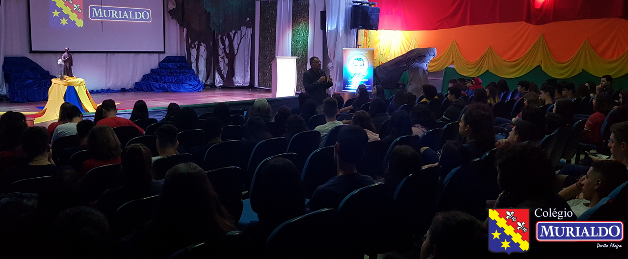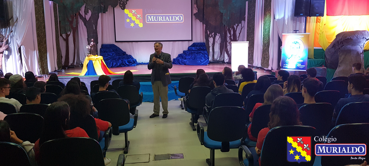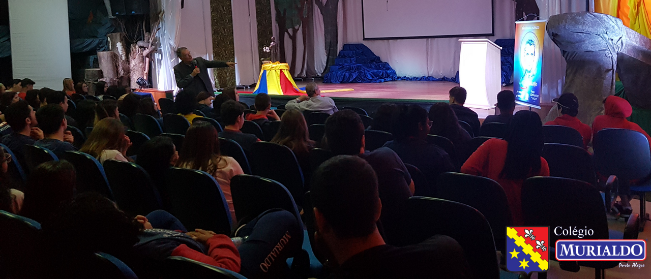 Durante a conversa com nossos jovens, Padre Túllio explanou sobre a importância do Ano Murialdino e o legado deixado por São Leonardo Murialdo, além de tratar e ouvir de nossos alunos seus anseios e relatos sobre temais atuais como a depressão, suicídio, política e como a escola tem uma papel fundamental em suas vidas, tornando-se sua segunda casa, onde encontram paz, amor e afeto.