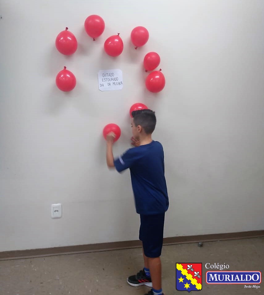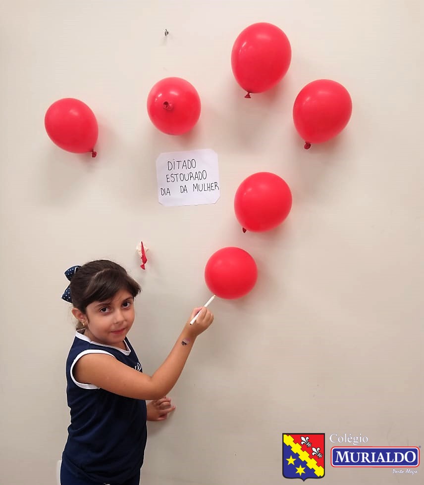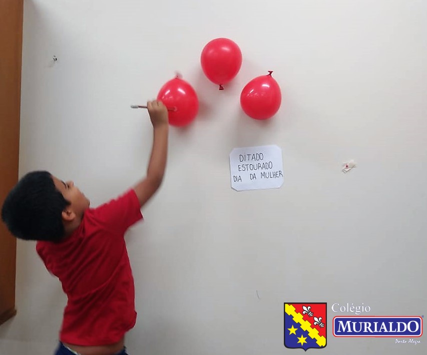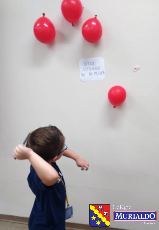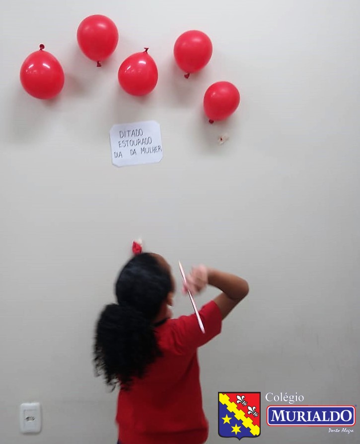 O ditado estourado consistia em os alunos escolherem um balão e, quando o estouravam, a professora ditava a palavra a turma.