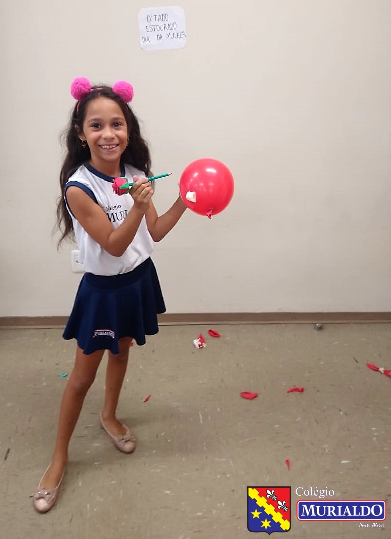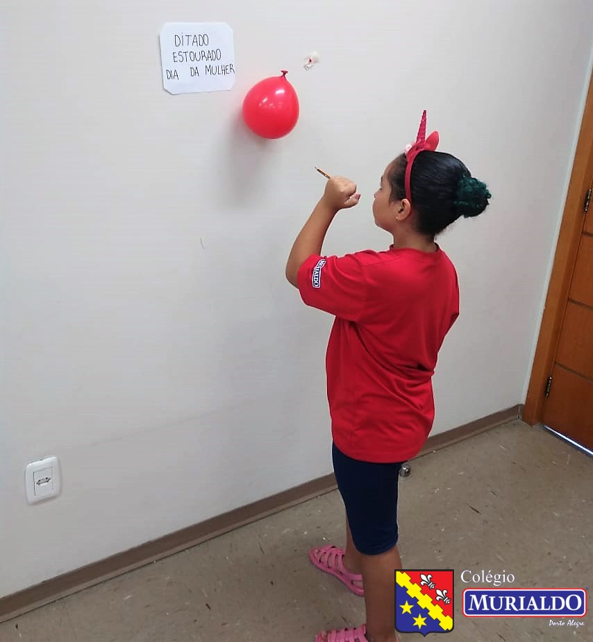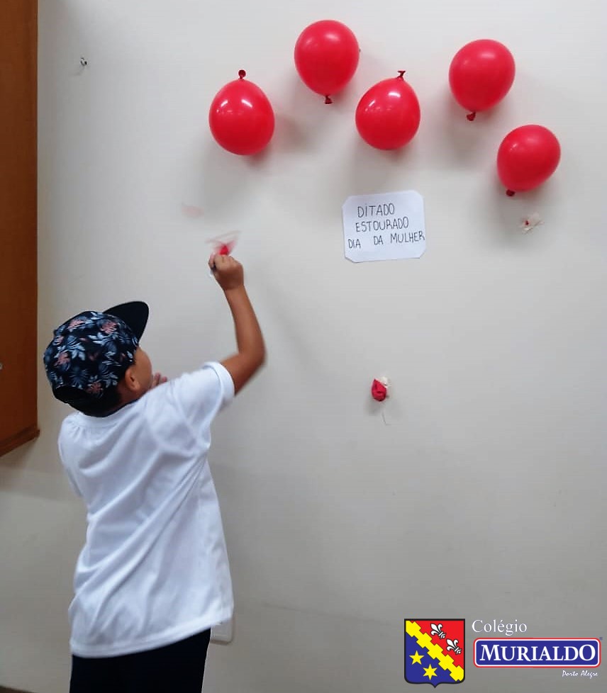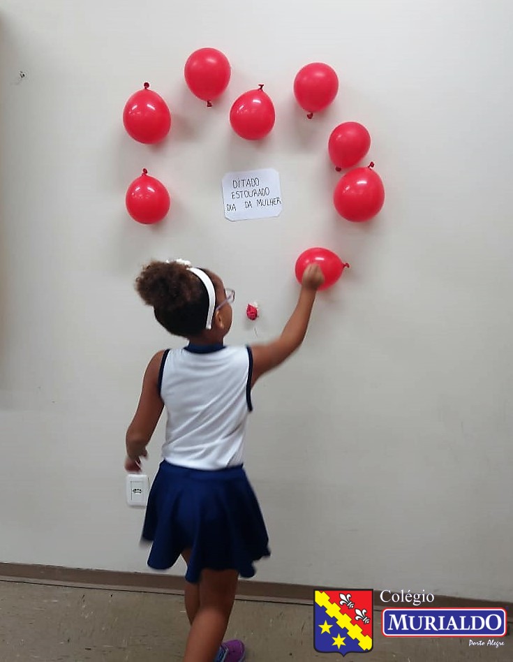 O ditado estourado consistia em os alunos escolherem um balão e, quando o estouravam, a professora ditava a palavra a turma.