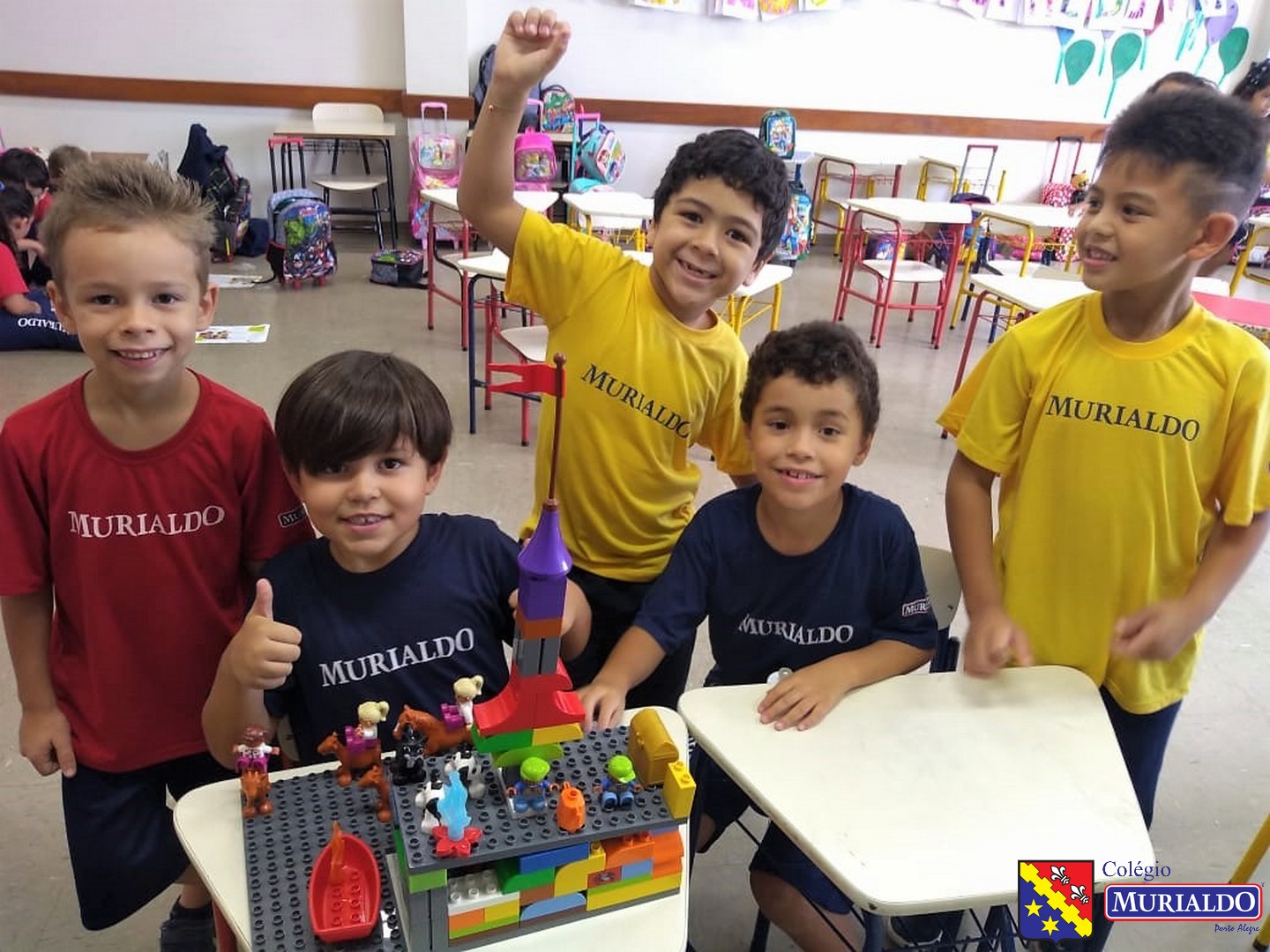 Além de trabalhar e estimular o aprendizado da língua inglesa, o programa bilíngue conta com projetos pedagógicos, além das habilidades sociais, físicas e mentais. Divididos em grupos, os alunos dos 1º anos do Ensino Fundamental I construíram um castelo de Lego.