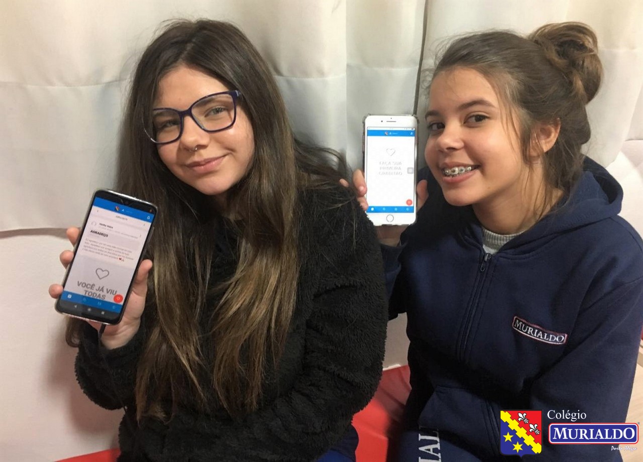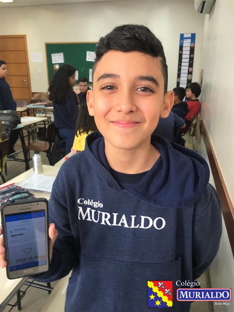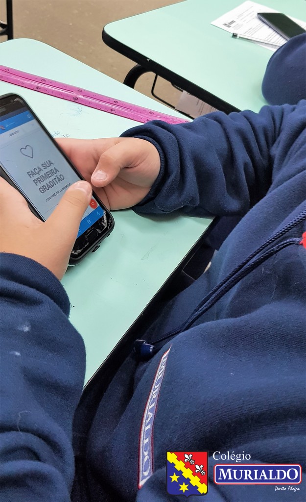 Através do aplicativo desenvolvido pelo colégio, "Gratidão Diária", os alunos escreveram várias mensagens com os temas pelos quais são gratos, além de fazerem a leitura para a turma.